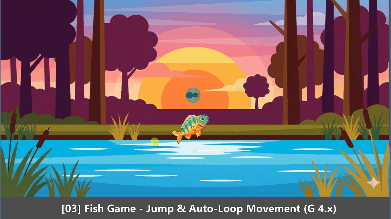 - [03] Fish Game - Jump & Auto-Loop Movement (G 4.x): Learn parabolic jump physics using