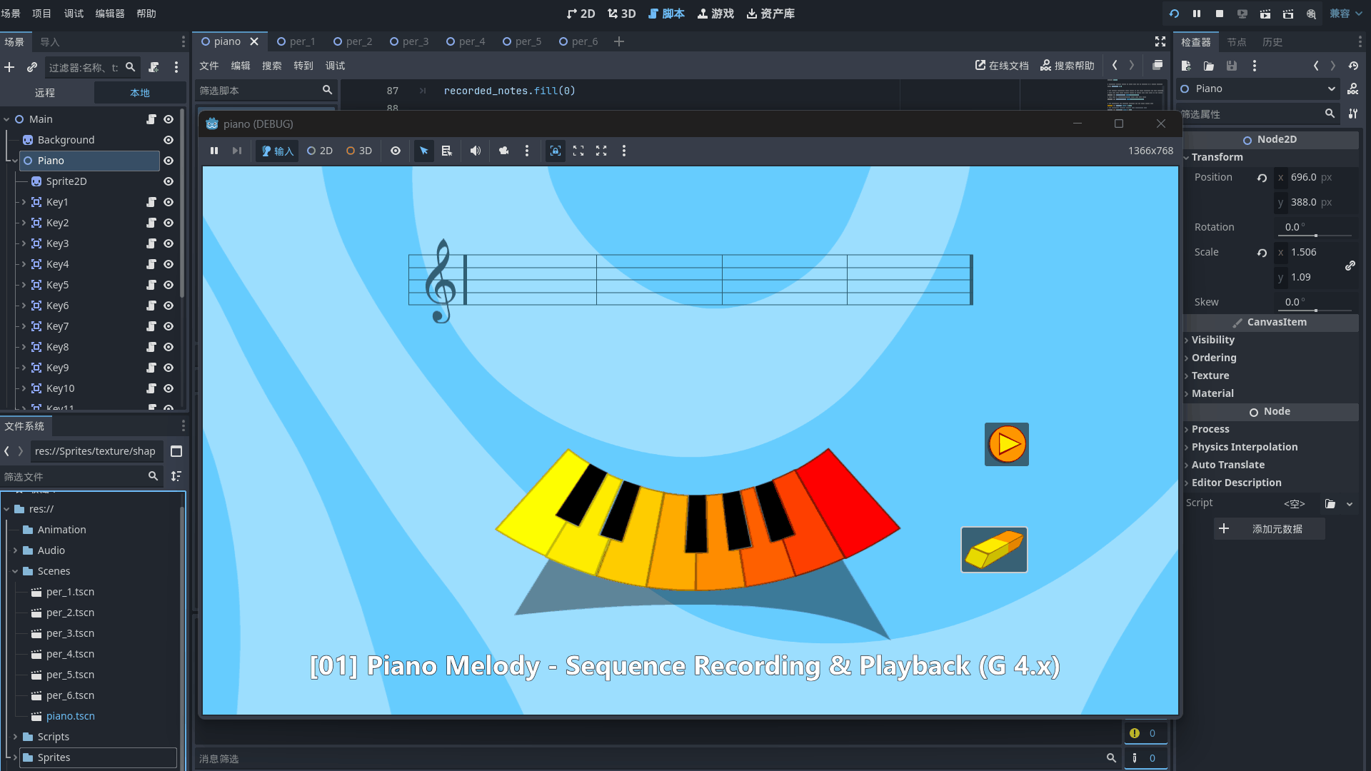 - [01] Piano Melody - Sequence Recording & Playback (G 4.x): Learn how to use Arrays to record player inputs and Dictionaries for easy data mapping, complete with an automated playback system.